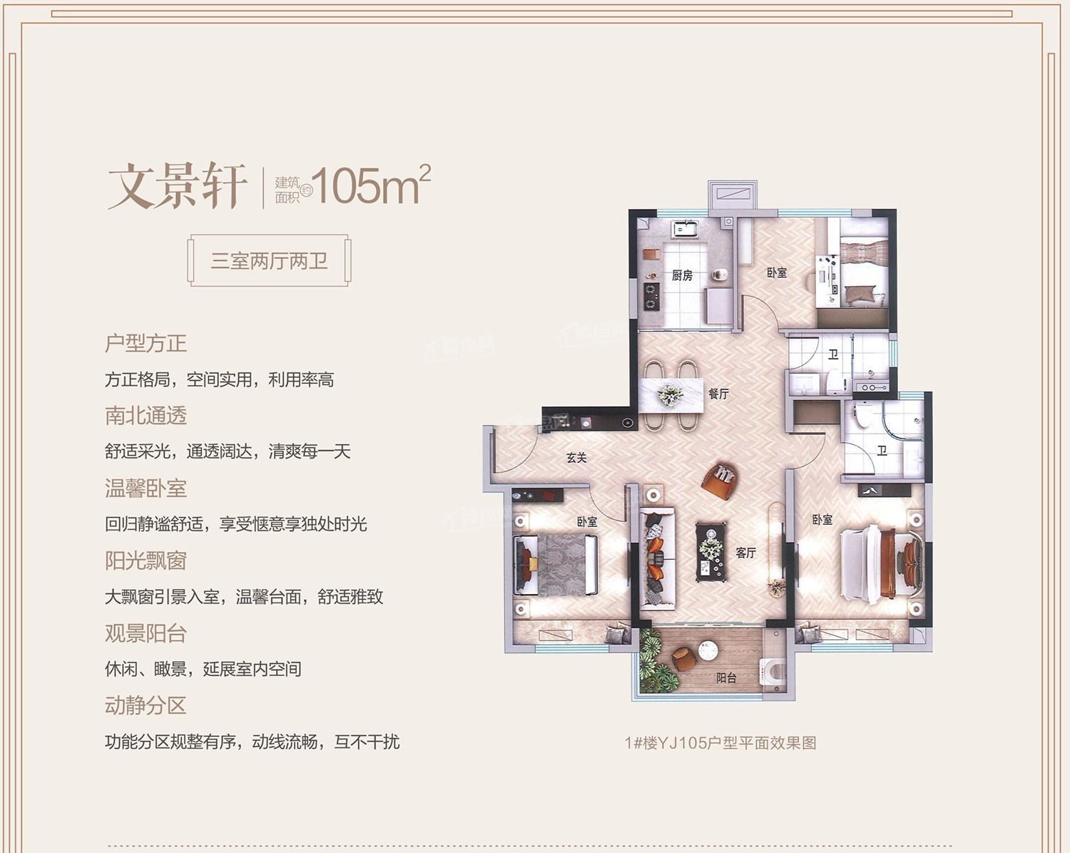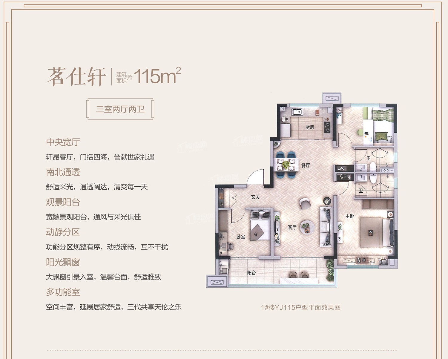 每个楼盘都有优势和劣势的,这个楼盘看你能接受不?配套比较完善。其中包含有购物中心、餐饮、菜市场、商店,能满足日常所需。目前在售105-115㎡3-3室。占地面积广,容积率低,整体规划都非常好。绿化率是35%,容积率是1.99。
